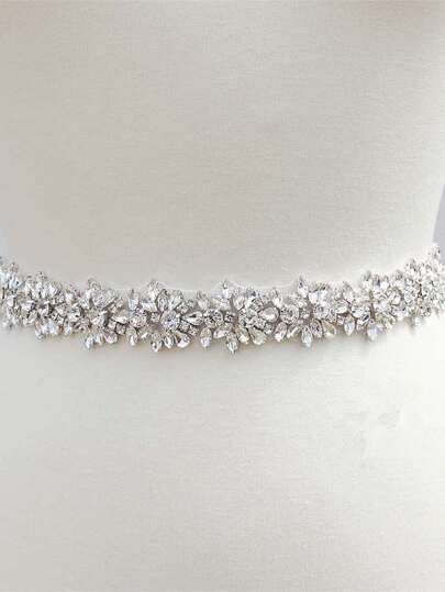 1pc Luxurious Handmade Rhinestone & Beaded Bridal Belt, Waistband, Waist Cincher For Wedding, Party Tiaras. Valentine's Day Accessories - White - View 1