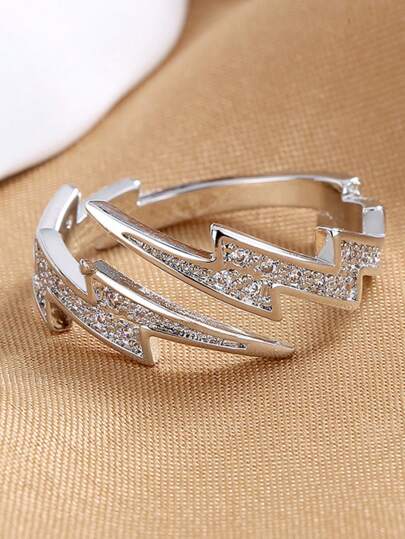1pc Luxury Adjustable Lightning Bolt Ring, Shiny Stylish Fashion Jewelry For Women, Suitable For Weddings, Parties, Music Festivals And Holidays - Silver - View 1