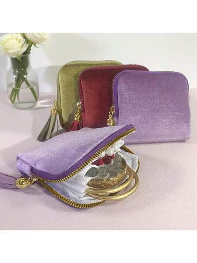 1pc Luxury Velvet Jewelry Storage Bag, With Zipper Closure And Tassel Decor - Soft Lining, Portable Travel Box, For Storing Bracelets, Watches, Earrings - Elegant Gift For Women/Mother's Day - Multicolor - View 1