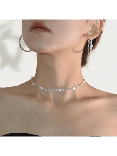 1pc Luxury Water Drop Rhinestone Claw Chain Soldered Rhinestone Necklace For Women, Perfect For Wedding, Engagement, Evening Party - Simplicity - View 1