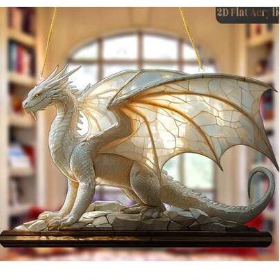1pc Majestic White Dragon Acrylic Light Catcher, 2D Flat Design, Fantasy Theme Hanging Decor, Suitable For Home, Office, Living Room, Studio, Ideal Gift For Friends And Family On Holidays - Multicolor - View 1