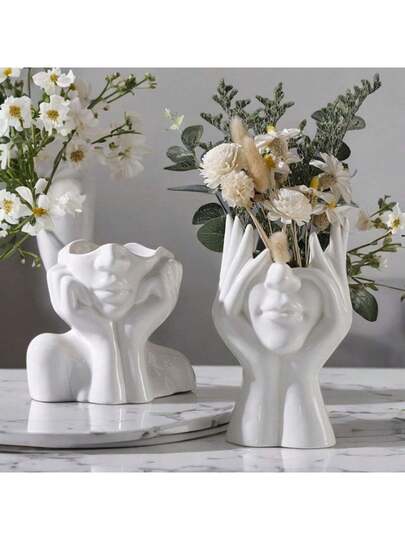 1pc Makeup Brush Holder, Face Art Desktop Decor, Can Be Placed On Vase, Compatible With Makeup Brushes, Eyebrow Pencils, Lipsticks, Pens, Home Storage Supplies - Multicolor - View 1