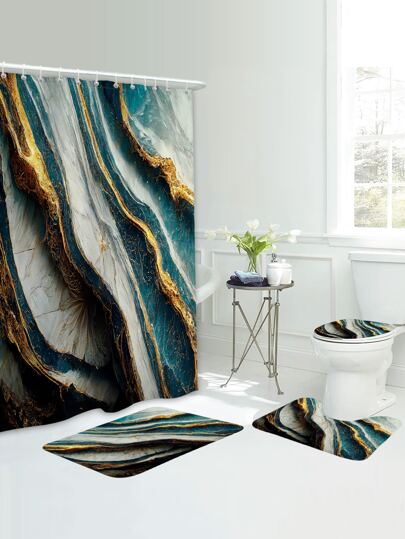 1pc Marble Print Bath Rug Or 1pc Shower Curtain - Multicolor - View 1
