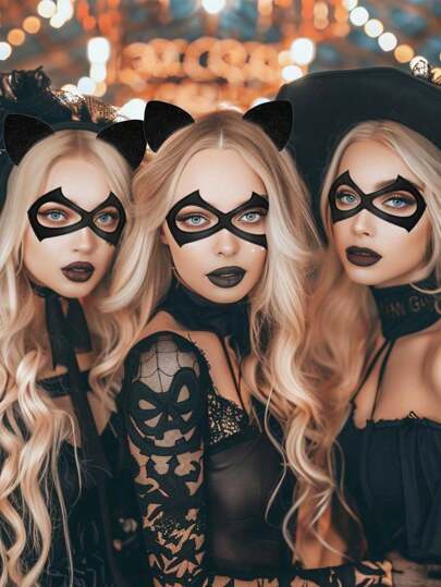 1pc Mask And 1pc Cat Ear Headband, Mask, Halloween Costume Party Accessories, Costume, Women's Costume, Adult Black Cat Costume, Halloween Party - Multicolor - View 11