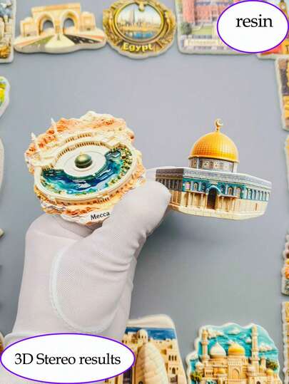 1pc Mecca Masjid, Masjid Al-Nabawi And Dome Of The Rock Fridge Magnet, Creative Vintage Middle Eastern Landmark Souvenir, Home Kitchen Decor, Islamic Holiday Gift - Mecca  Mosque - View 7