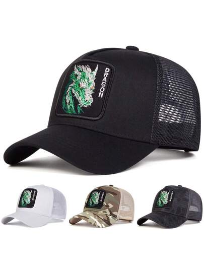 1pc Men's Dragon Trucker Hat, Personalized Letter & Dragon Embroidered Baseball Cap, Streetwear Fashion, Casual Hat For Spring, Autumn, Travel, Beach - Multicolor - View 1