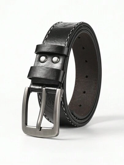 1pc Men's Geometric Embossed Pin Buckle Casual Belt - Black - View 1