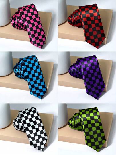 1pc Men Dual-Color Plaid Fashionable Handmade Tie, Suitable For Business, Formal Occasions And Daily Wear With Dress Shirt And SuitMen Necktie - Multicolor - View 14