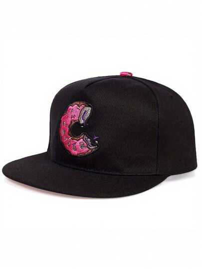 1pc Men's Baseball Cap With Donut Embroidery, Outdoor Sport Hat For Spring And Summer Travel Accessories - Black - View 1