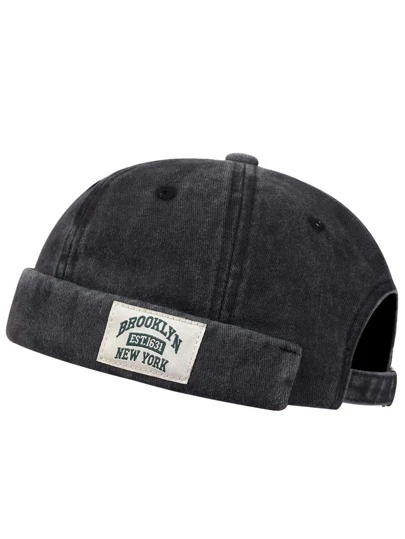 1pc Men's BROOKLYN 1631 Vintage-Inspired Casual Newsboy Cap, Distressed Simple Versatile Flat Top Hat, Suitable For Streetwear And Everyday Wear - Black - View 3