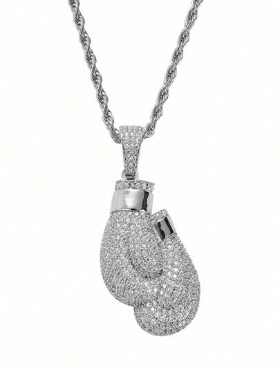 1pc Men's Boxing Glove Cubic Zirconia Pendant Necklace (No Gift Box) - Silver - View 1
