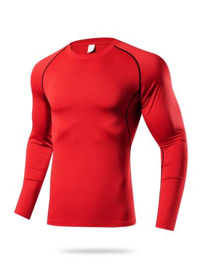 1pc Men's Compression Long Sleeve Fitness Top, Tight Core Exercise Base Layer - Red - View 1