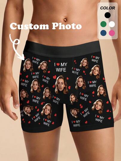 1pc Men's Customized Printed Valentine's Day Boxer Briefs - Multicolor - View 1