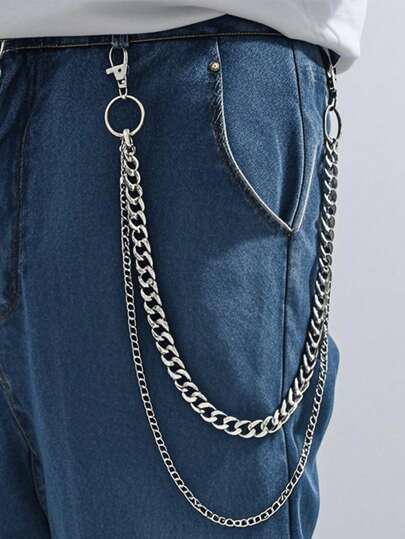 1pc Men's Double-Layer Waist Chain, Casual Unisex Hip Hop Waist Chain, Daily Wear Accessory - Silver - View 1