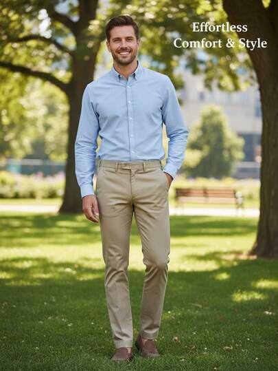 1pc Men's Suit Pants, Suitable For Party, Business Banquet, Outdoor, Casual Holiday, Size XS-XXXL - Champagne - View 1
