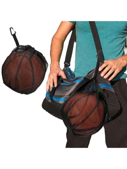 1pc Mesh Ball Bag With Zipper Pocket, Football Bag With Quick Release Buckle, Basketball Bag, Suitable For Various Backpacks, Can Be Used To Carry Basketball, Football, Volleyball And Other Sports Essentials, Ideal Gift For Outdoor Sports, Training And Travel. Sports Bag, Travel Bag, Handbag, Essential For Outdoor Travel. - Multicolor - View 1
