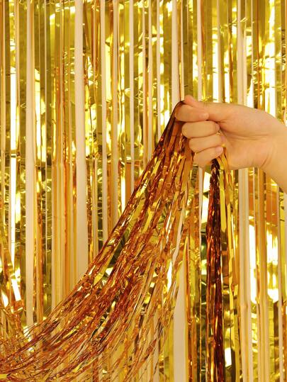 1pc Metallic Tassel Curtain, Gold Plastic Party Backdrop Decoration, For Party Decor - Gold - View 1