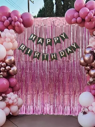 1pc Metallic Tassel Curtain - Baby Pink - View 1