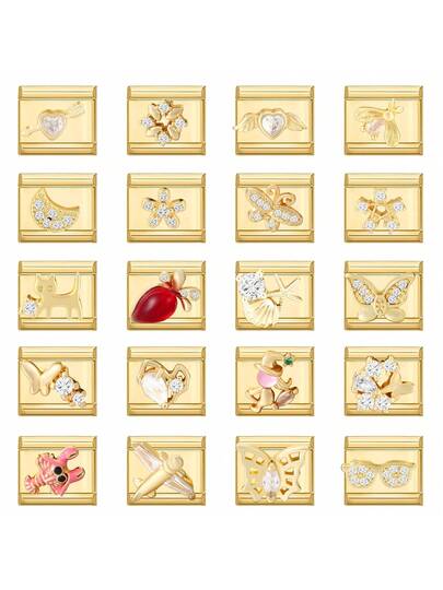 1pc Micro-Inlaid DIY Italian Modular Bracelet, Decorated With Heart, Flower, Moon, Butterfly Elements, Suitable As Party Gift For Friends/Couples, Applicable For Christmas, New Year, Halloween, Valentine's Day, Charming Design, Stainless Steel Jewelry - M292229 - View 20