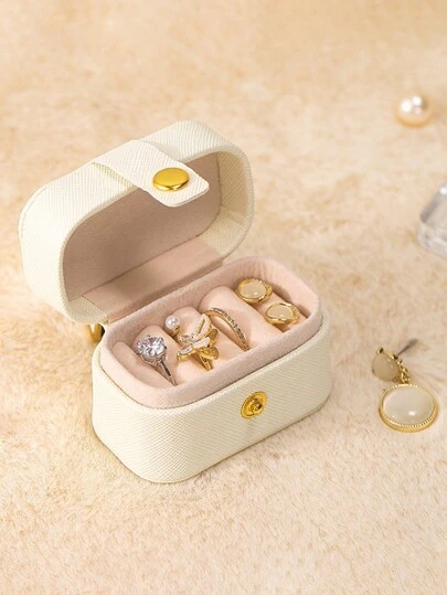 1pc Mini Cute & Creative Jewelry Box, PU Leather Earrings & Rings Storage Organizer Box For Girls - Multicolor - View 1