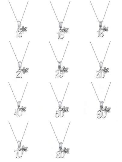 1pc Minimalist 925 Sterling Silver Sakura Flower & Number Pendant Necklace, Ideal For Birthday & Anniversary Gift - Silver - View 15