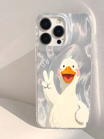 1pc Minimalist Cartoon Duck Pattern Phone Case, Transparent Thick Protective Cover Compatible With Samsung A05, A05S, A13, A14, A15, A53, A54, A55, A56, S22, S23, S24, S25 And Apple 11, 12, 13, 14, 15, 16 Pro Max - Multicolor - View 1