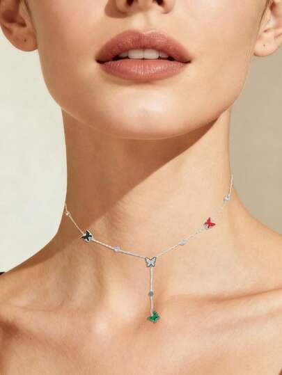 1pc Minimalist Commuter Butterfly Necklace, Fine Silver Chain + Contrasting Butterfly Pendant, Delicate And Understated, Pairs Well With Shirts, Blazers For Daily Commute And Dates - Multicolor - View 1