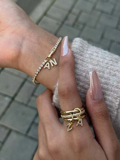 1pc Minimalist Cubic Zirconia Gold Initial DIY Bracelet, Customized Simple Letter Name Bracelet, Stainless Steel Personalized MAMA Bangle, Fashionable, Autumn, Minimalist, Casual, Vintage Coin Customized, Unique Gift For Girlfriend, Mom, Family, Friend, Daughter, Anniversary, Valentine's Day, Mother's Day, Birthday, Graduation, Daily Wear, Wedding, Party - Gold - View 1