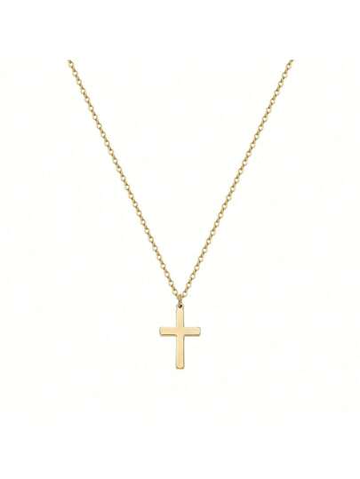1pc Minimalist Gold-Tone Cross Pendant Necklace, Fashionable Collarbane Chain Daily Accessory - Gold - View 1