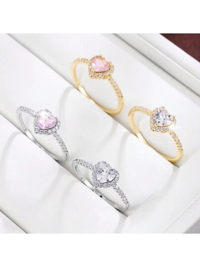 1pc Minimalist Heart Shaped Design Elegant Women Ring - Multicolor - View 1