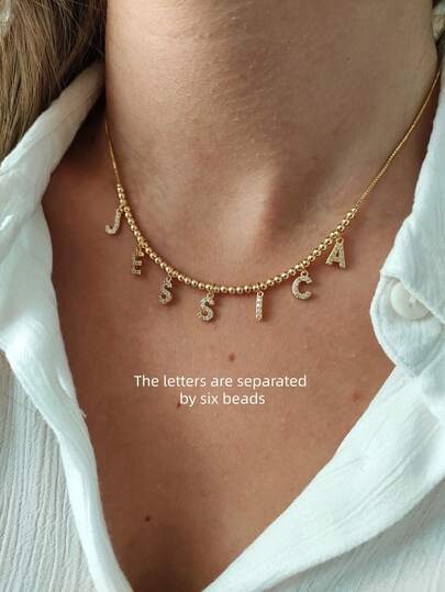 1pc Minimalist Sphere Bead Cubic Zirconia Gold Initial Letter DIY Necklace, Customized Simple Letter Name Necklace, Stainless Steel Initial MAMA Pendant Necklace, Fashionable, Casual, Personalized, Unique Gift For Girlfriend, Mom, Family, Friend, Daughter, Anniversary, Valentine's Day, Mother's Day, Birthday, Graduation, Daily Wear, Wedding, Party - Gold - View 1