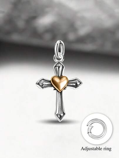 1pc Minimalist & Unique 925 Sterling Silver Heart, Faith, Growth, Cross Pendant, Delicate Jewelry Gift For Men & Women - Style 5 - View 1