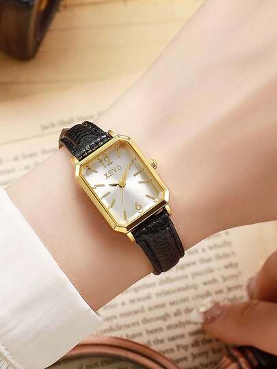 1pc Minimalist Women's Rectangular Roman Numeral Dial Fashion Bamboo Strap Watch, Suitable For Daily Wear, Birthday, Anniversary Gift, Year-End Promotion, Singles Day, Halloween Promotion And Other Holiday Gifts - Black and White - View 3