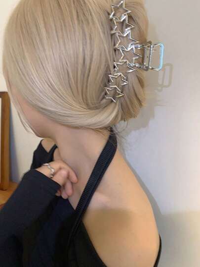 1pc Minimalistic Metal Star Y2K Hair Claw Clip, Fashion, Elegant, Versatile, Simple Style, Solid Color Hair Accessory Hair Clips Hair Jaw Clip Hair Clamps Hair Clutch Hair Catcher Clip, Casual Fall Winter Hair Accessories For Women For Vacation Outfits Woman - Silver - View 1