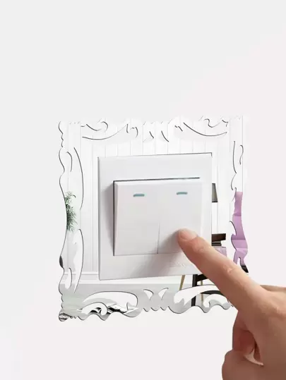1pc Mirror Surface Switch Wall Sticker, Modern Plastic Switch Sticker For Home Decoration Mirror Wall Wall Decor Room Decor Wall Mirror Mirror For Room Bathroom Decor Living Room Decor - Silver - View 1