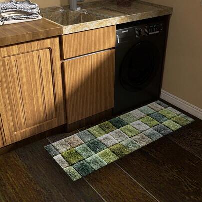 1pc Modern Minimalist Abstract Geometric Plaid Style Kitchen Mat, Hallway Rug; High-End Technic Fabric, Rubber Backing, Anti-Slip & Wear-Resistant, Waterproof, Durable; Suitable For Kitchen, Living Room, Bedroom, Corridor, Walkway, Bar Counter And More Scenes. Machine Washable, Easy Care, Soft Underfoot, Enhancing Home Happiness. 1800gsm, Heavy Weight, Quality Raw Materials, Reliable Product. - G - View 8