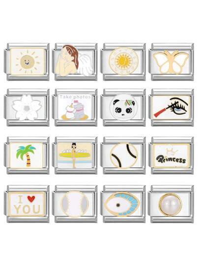 1pc Modular Drip Oil DIY Italian Style Bracelet, Decorated With Text, Heart, Flower Elements, Suitable As Party Gift For Friends/Couples, Applicable For Christmas, New Year, Halloween, Valentine's Day, Charming Design, Stainless Steel Jewelry - M288045 - View 19