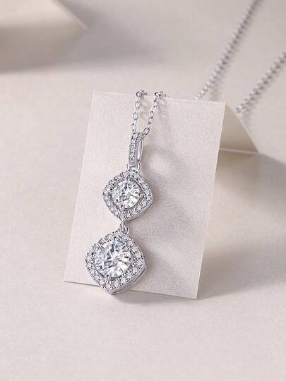 1pc Moissanite Necklace 925 Sterling Silver Women's Pendant Clavicle Chain, Jewelry Decoration For Mother's Day, Valentine's Day, Engagement, Wedding, Anniversary, Birthday, Daily Wear - Style 2 - View 1