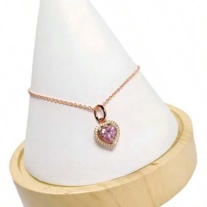 1pc Moments Pink Heart Necklace In Rose Gold Plated And Zirconia Kit 45 Cm - As Shown - View 1