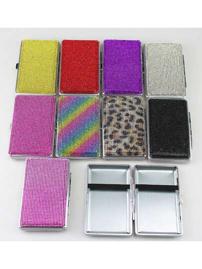1pc Multi-Color Double-Sided Rhinestone Women Cigarette Case Leopard Print, Smoking Accessories, Smoking Accessories Girly, Cigarette Storage, Cigarette Holder Case, Gifts - Multicolor - View 11
