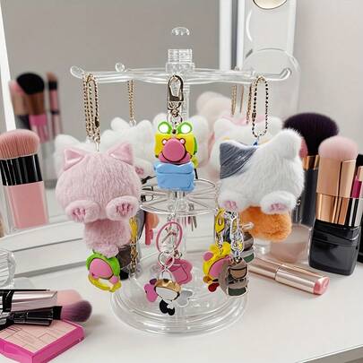 1pc Multi-Functional Double-Layer Rotatable & Detachable Adjustable Jewelry Display Rack - Transparent Plastic Multi-Hook Organizer Rack Suitable For Necklaces, Keychains, Earrings - For Home And Store Counter Use, Jewelry Storage Rack, Keychain Display Rack, Rotating Hook Design, Hook Hanging Accessories, Jewelry Tower - Multicolor - View 1