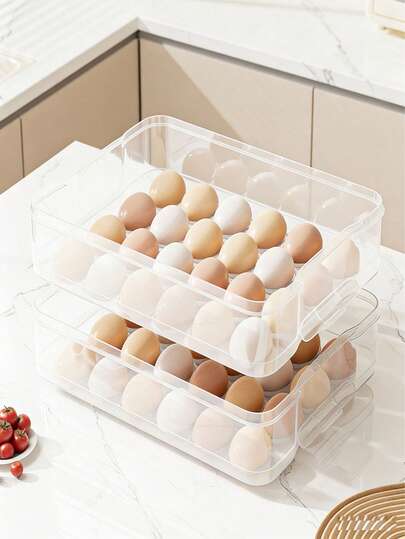 1pc Multi-Size PET Egg Storage Rack, 24/48 Slots With Lid, Transparent Refrigerator Egg Organizer, Stackable Egg Protection Container, Suitable For Pantry, Fridge, Kitchen - Clear - View 1