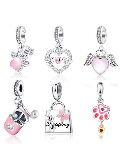 1pc Multicolor Fashion Rhinestone Hollow Dripping Oil Heart Wing Claw Print Earphone Case Pendant Jewelry DIY Accessory - Heart Paw Print Pendant - View 6