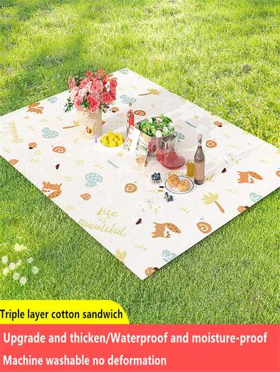 1pc Multilayer Foldable Picnic Mat & Blanket, Wear-Resistant Thickened Outdoor Camping Hiking Moisture Proof Pad For Beach, Lawn, Garden - Autumn Forest - View 6