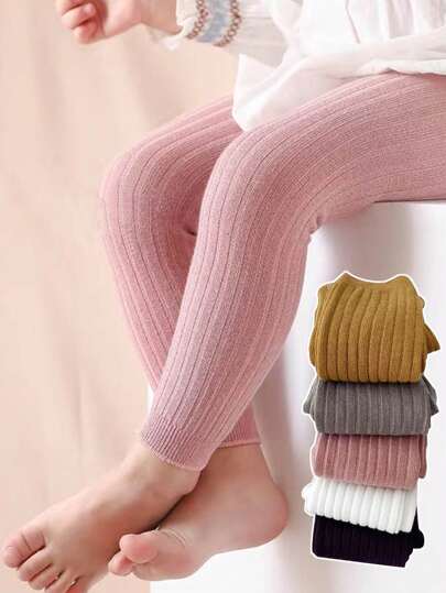 1pc Multiple Colors Spring/Autumn Ribbed Leggings For 0-8 Years Old Toddlers, Soft & Comfortable Baby Tights, Unisex - Pink - View 6