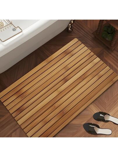 1pc Natural Bamboo Wood Grain Bath Mat - Non-Slip, Super Absorbent Silicone Bathroom Carpet, Quick Dry, Suitable For Bathroom, Kitchen, Living Room, Cafe, Bar, Garden - Essential Personal Care Gift, Ideal For Bathroom Decor - Multicolor - View 1