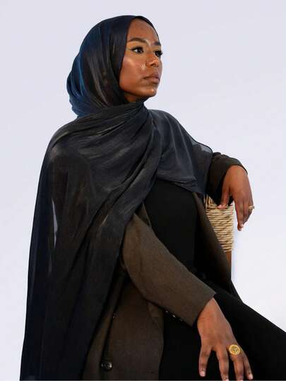 1pc Natural Crinkle Solid Color Muslim Headscarf Satin Hijab - Dark Green - View 11