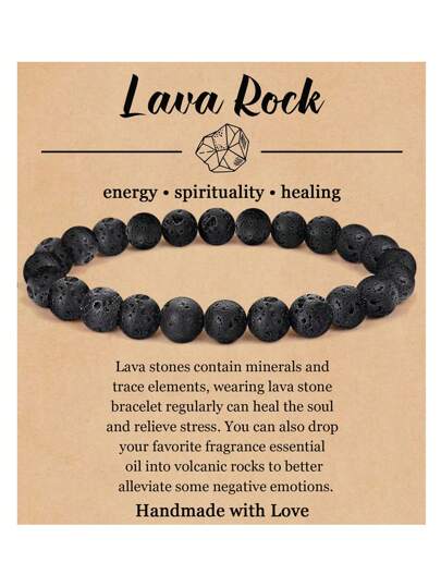 1pc Natural Crystal Bracelets for Women Men - 8mm Semi-Precious Gemstone Beaded Bracelets, Round Gemstones Stretch Bracelet, Yoga Bracelets Jewelry Gifts - Lava Rock - View 15