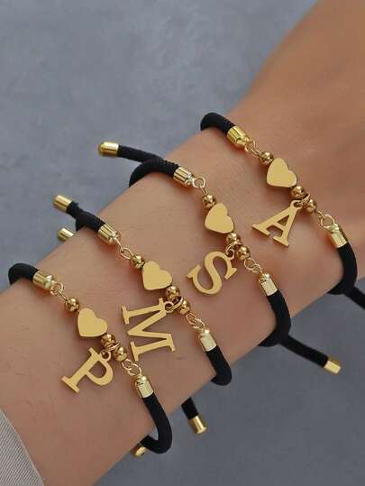 1pc New Classic A-Z Heart Initial Letter Bracelet Girl Simple Adjustable Colorful Rope Bracelet For Girl Jewelry Gift - Bracelet 2 - View 1