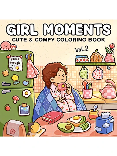 1pc New GIRL MOMENTS Adult Coloring Book | Tracing For Beginners + Stress Relief Doodle, Adult Relaxation Toy, Simple Relaxing Design, Includes Various Comfortable Girl's Daily Life Patterns And Scenes, Suitable For Stationery, School Supplies, Great Gift For Girls, Valentine's Day, New Year - GIRL MOMENTS - View 3